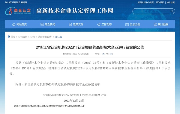 2023年12月28日,全國高新技術(shù)企業(yè)認定管理工作領(lǐng)導(dǎo)小組辦公室發(fā)布《對浙江省認定機構(gòu)2023年認定報備的高新技術(shù)企業(yè)進行備案的公告》,中國能源工程集團有限公司(以下簡稱“中國能源工程集團”)所屬中清能源(杭州) 有限公司...
